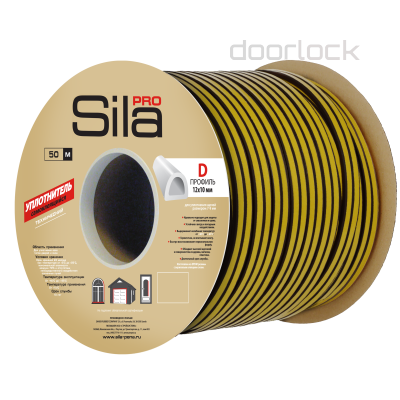 Уплотнитель для дверей EPDM D-образный 10х12мм, черный, самоклеящийся, рулон 50м